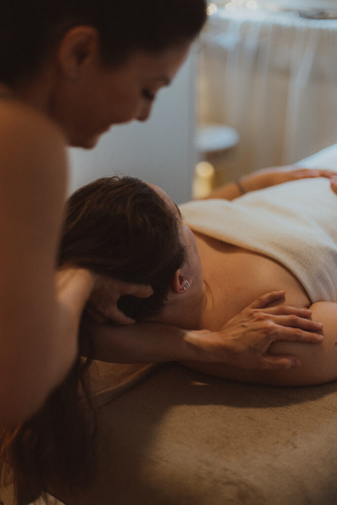 Le massage du ventre permet de dénouer les tensions viscérales, tandis que le travail sur le dos et les épaules aide à évacuer le stress accumulé.